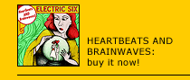 "Heartbeats and Brainwaves" marks a turning point in Electric Six's self-imposed continuum. We have often said that 90% of our songs are about nothing. On "Heartbeats and Brainwaves", 100% of the songs are about something or someone. Electric Six is finally taking a stand. Electric Six will no longer sit idly by and say nothing. We are saying something here. Finally.